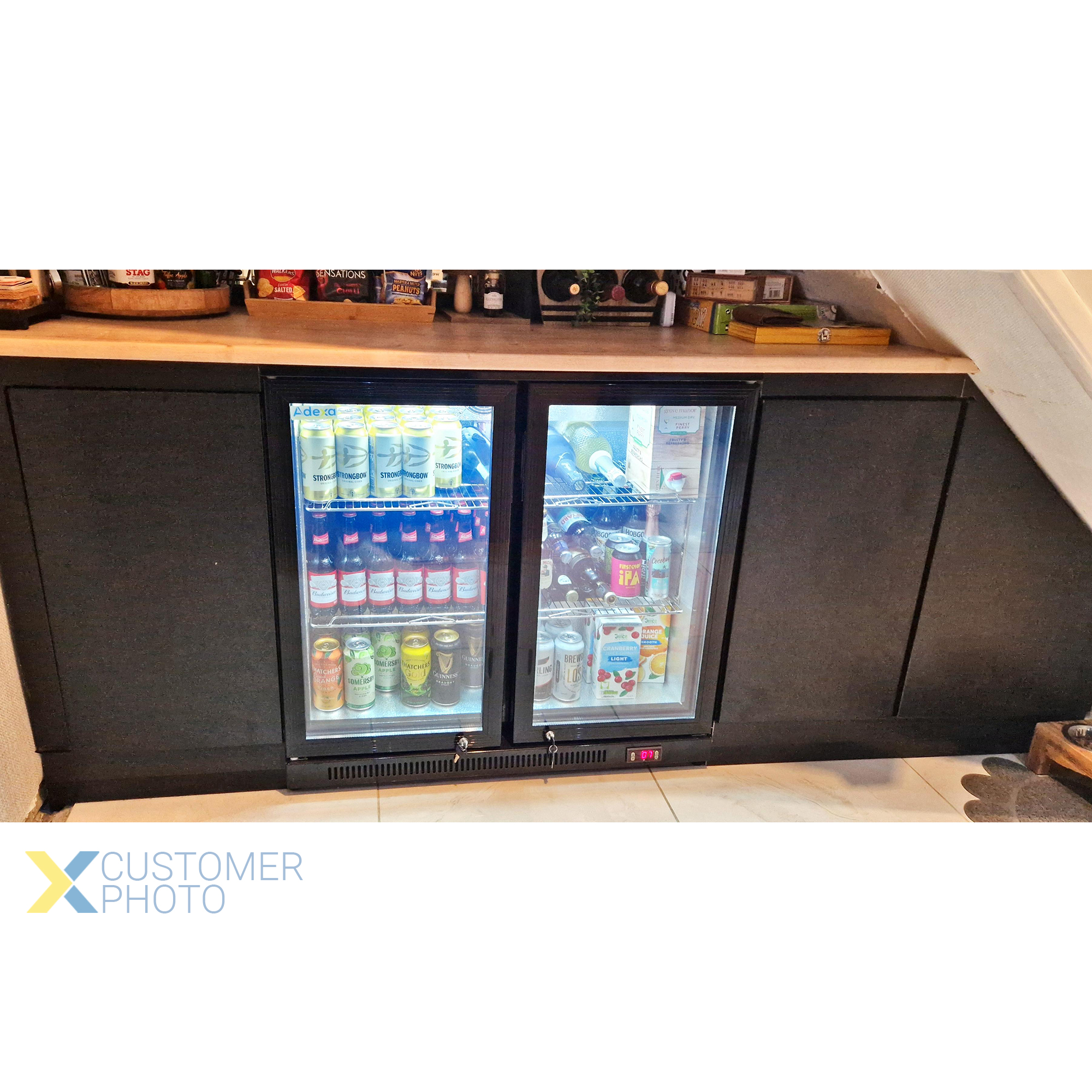 Tämä monikäyttöinen juomajääkaappi, jossa on kaksi suurta, lasista ovea, tarjoaa joukon hyödyllisiä ominaisuuksia, mukaan lukien integroitu lämpötilansäädin ja automaattinen sulatus. Erittäin tilaa säästävä alakalusteisiin soveltuva olutjääkaappi, joka täyttää juomien jäähdytyksen tarpeet. Tämä takabaarikaappi on kaupalliseen käyttöön. Täydellinen pullotetun oluen jäähdyttimenä tai baarin juomajääkaappina. Soveltuu houkuttelevaan kylmien oluiden, siiderien ja virvoitusjuomien esillepanoon baareissa, pubeissa, ravintoloissa ja hotelleissa loistavaan alennettuun hintaan.Netto tilavuus: 220 litraaAutomaattinen sulatus: KylläLämpötila digitaalinäyttö: KylläOhjausjärjestelmä: ElektroninenLasin oven tyyppi: Saranoitu oviOven kehys, oven kahvan materiaali: Musta/Hopea PVCLasityyppi: LaminoituOven automaattisulkeutuminen: KylläLukko: KylläSäädettävät jalat: 4 kplSisävalo: VaakalinjaJännite/taajuus: 220~240V/50HZLämpötila: +2C – +8CMaksimi ympäristölämpötila: +35CUlkokaappi: Esimaalattu teräs Sisäkaappi: Valkoiseksi maalattu teräsDokumentit Lataa energiamerkintä tästä