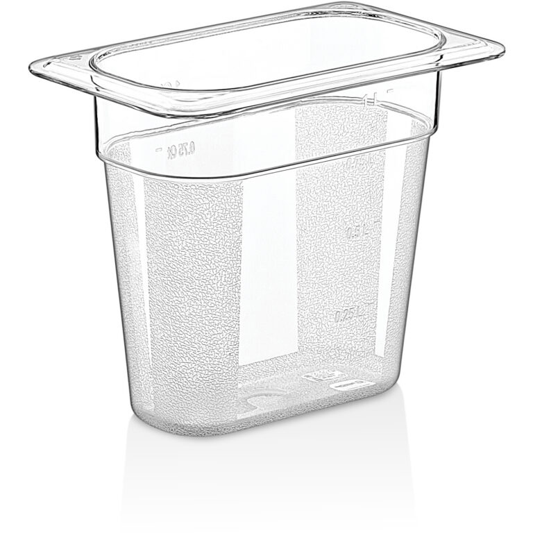 Lisää monipuolisuutta keittiöösi tämän raskaan käytön kirkkaan polykarbonaattisen gastronorm-vuoan avulla. Kestävästä polykarbonaatista valmistettua vuokaa voi käyttää jäähdytetyissä valmistelupöydissä tai irtonaisena säilytysastiana lankahyllyilläsi. Se on monipuolinen lisä keittiöösi, koska sitä voi käyttää ruoan valmisteluun, säilyttämiseen, kuljettamiseen ja tarjoiluun. Voit jopa käyttää sitä höyrypöydässäsi tai salaattibaarissasi! Elintarviketurvallinen polykarbonaattimateriaali on käytännössä särkymätön ja kestää elintarvikkeiden happoja ja öljyjä, mikä pidentää tämän vuoan käyttöikää. Se kestää myös lämpötiloja -40 – 100 astetta Celsius, joten sitä voidaan käyttää erilaisissa säilytyspaikoissa. Vahvistetut ylä- ja alakulmat ovat myös kestäviä taipumista, halkeilua ja lommoontumista vastaan, joten tämä vuoka on valmis pitkäaikaiseen käyttöön ammattikeittiössäsi. Katso yksityiskohtaiset tiedot kohdasta ’Määrittely’.