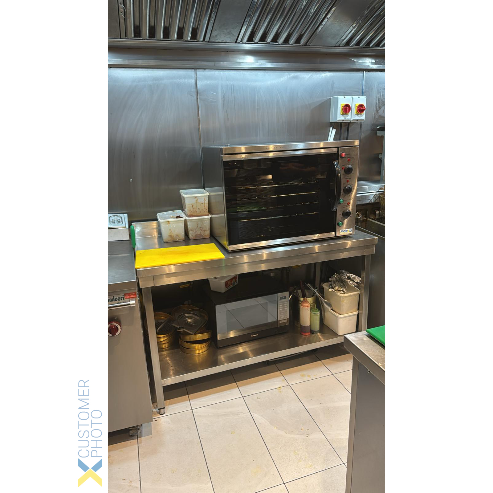 Tämä kaupallinen kiertoilmauuni on varustettu kypsennys- ja säilytystoiminnolla, mikä tekee siitä erittäin hyödyllisen välineen catering-keittiöihin! Kypsennys- ja säilytystoiminto: kun uuni on asetettu kypsennys & säilytys -tilaan, se pitää ruoan lämpimänä vakiona +90 asteen lämpötilassa varsinaisen kypsennyksen jälkeen. Tämä kiertoilmauuni kypsentää ruoan nopeammin alhaisemmassa lämmössä ja tasaisemmin kuin tavalliset uunit. Paistamiseen aseta uuni 160 asteeseen: tämä uuni säilyttää kosteuden ja voi ehkäistä ruoan kutistumista. Paistoaika voi lyhentyä 10 minuuttia per kilo ruokaa. Grillaustoiminto. 4 x lankaritilä kokoa 550x365mm (sopii GN1/1 pannuille). Mitat: 796x670x580mm. Teho: 2,8kW. Paino: 70kg. EGO 250 -termostaatti päälle/pois -toiminnolla. Turvakatkaisija. Kumitiiviste. Bakeliittinen kahva. 60 ja 180 minuutin ajastin. Silikonisuojakytkin. Korkean hyötysuhteen ruostumattomasta teräksestä valmistetut lämmityselementit. Liukumaton jalka. Keraaminen pinnoite kammiossa. Ylä- ja alalämmityselementit.