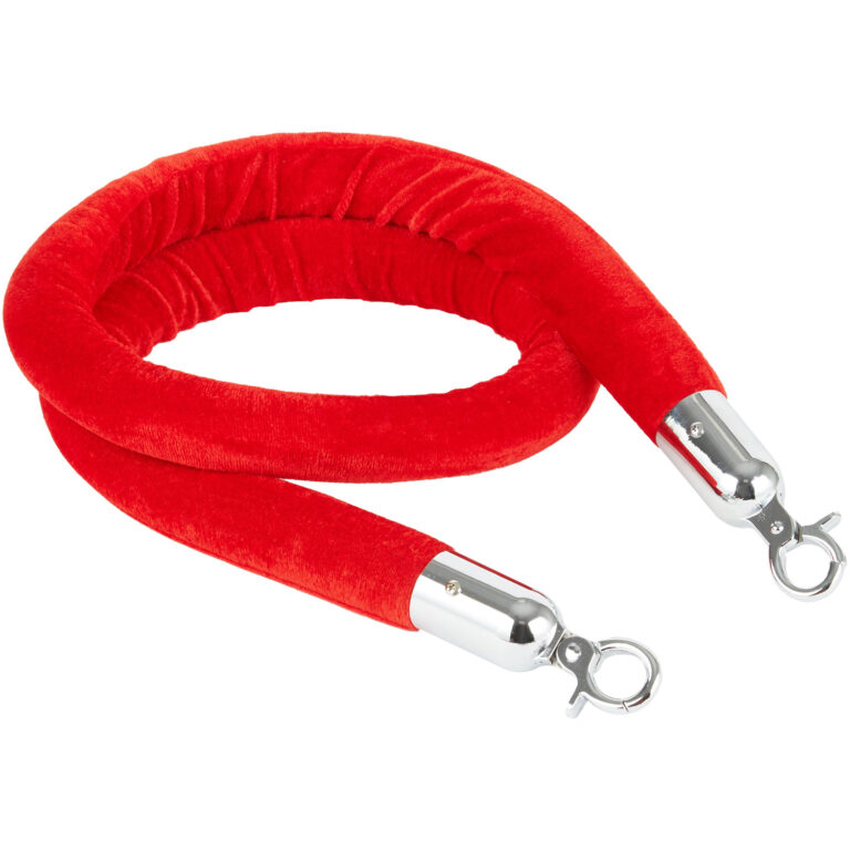 Varustettu ylellisellä veluuriköysimuotoilulla ja hopeisilla päillä, tämä köysi ohjaa kaikki vieraasi oikeaan paikkaan. Sekä klassinen että elegantti, tämä väkijoukonhallintaköysi tarjoaa luotettavaa apua ravintolassasi, yökerhossasi tai kasinollasi. Köyden liikuttelu on myös helppoa koukkupäiden ansiosta, jotka on helppo avata ja sulkea. Pituus: 1500 mm Koukun halkaisija: 28 mm