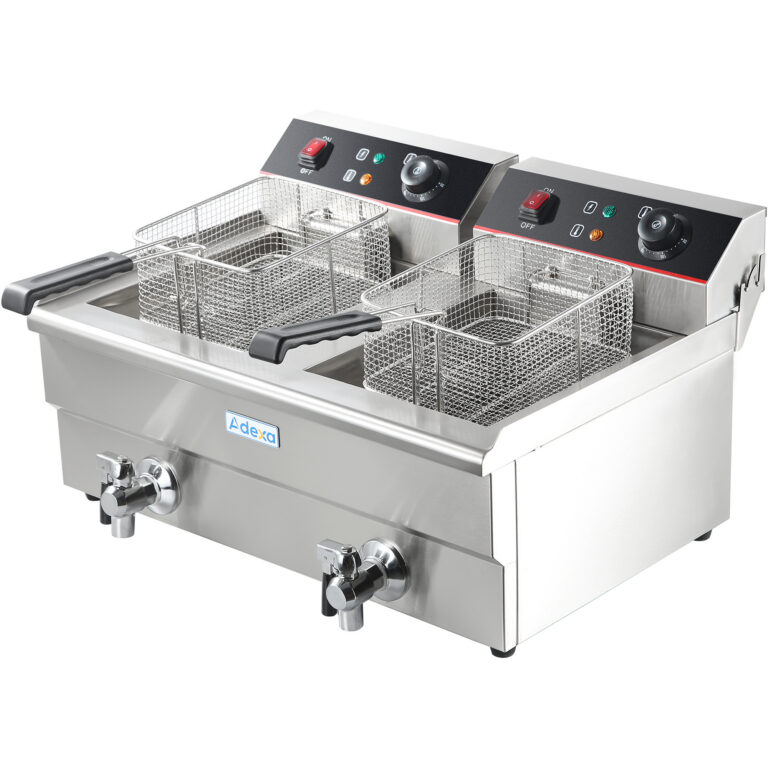 Korkealaatuinen kaksoissäiliöllinen ammattilaiskäyttöön tarkoitettu sähkökeitin. Uskomattoman tilaa säästävä 550 mm leveydellään ja suuri kapasiteetti 2 x 6 litran säiliöt. Ihanteellinen laite korkeatuottoisille pikaruokayrityksille ja varmasti välttämätön hankinta minkä tahansa ravintolan, kahvilan, noutoruoan tai ruokalan tarpeisiin. Tällä hetkellä suuret alennussäästöt tämän huippuedullisen hintatarjouksen ansiosta. 8 + 8 litraa 2800 + 2800 W +50C – +190C Kaksosäiliö 2 koria Katso lisätiedot kohdasta ’Tekniset tiedot’.