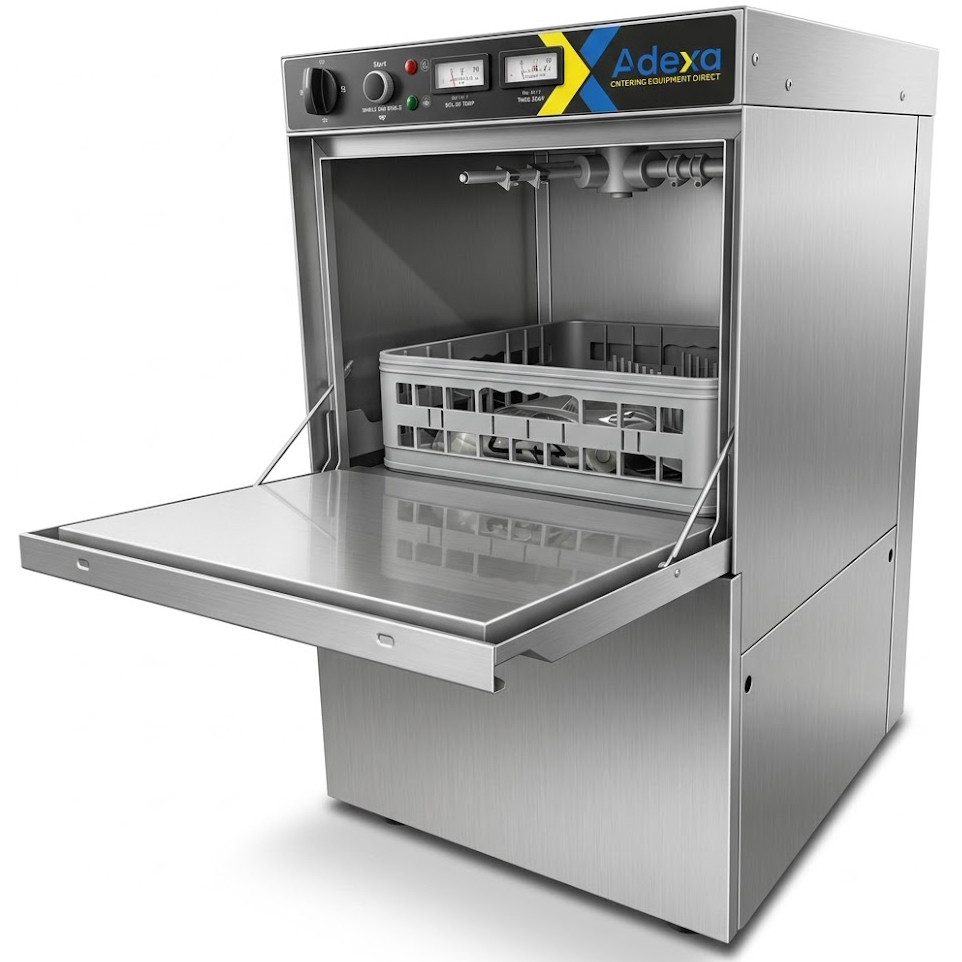 Ammattimainen lasinpesukone 30 koria/tunti 400mm kori Tyhjennyspumppu Pesuainepumppu Huuhteluainepumppu Säiliö- ja kattilatermostaatti | Adexa WZ40DRDPBTT