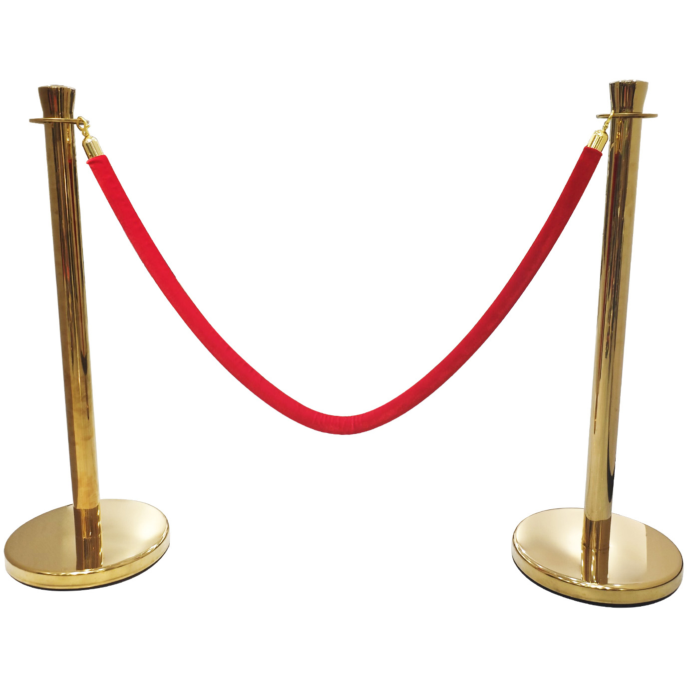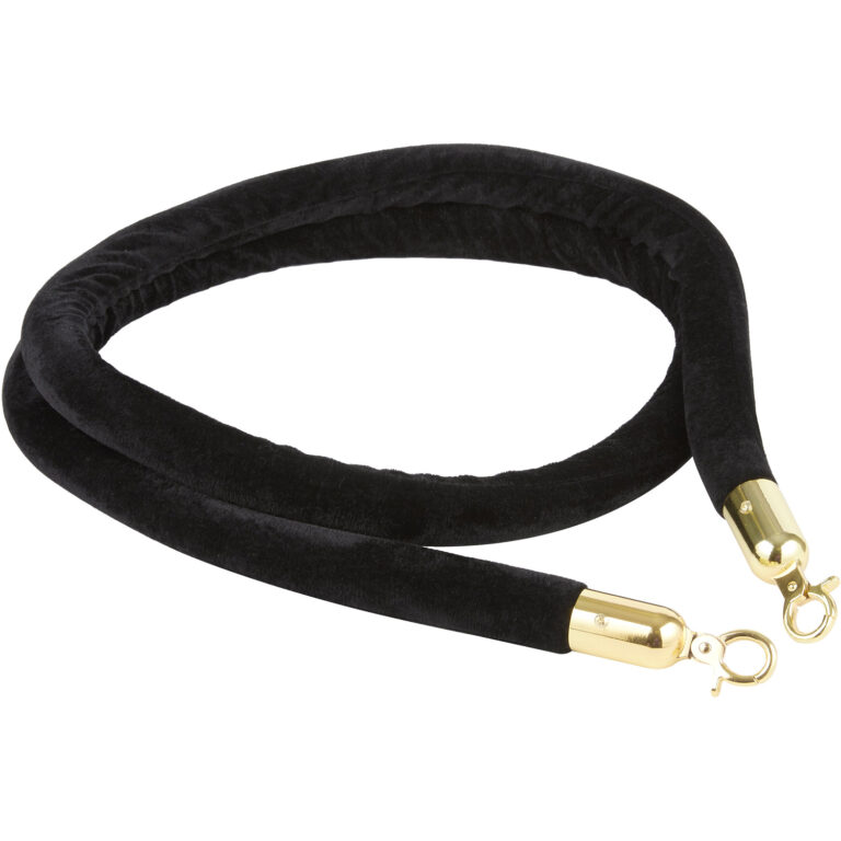 Varustettu pehmeällä veluuriköysimuotoilulla ja kultaisilla päillä, tämä köysi ohjaa kaikki vieraasi oikeaan paikkaan. Sekä klassinen että elegantti, tämä väkijoukon hallintaköysi tarjoaa luotettavaa apua ravintolassasi, yökerhossasi tai kasinossasi. Köyden liikuttelu on myös helppoa koukkupäiden ansiosta, jotka on helppo avata ja sulkea. Pituus: 1500mm Koukun halkaisija: 28mm