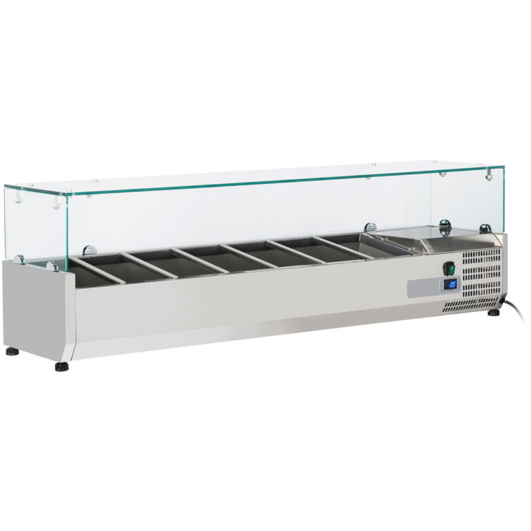 Kaupallinen konditoriavitriini, joka voi toimia leipomon tiskinä, ammattimaisena herkkutiskinä tai tavallisena näyttöjääkaappina. Täydellinen kakkutiski useimpiin kahviloihin, herkkumyymälöihin, ravintoloihin, hotelleihin tai kauppoihin. Syklopentaani- eristys Korkealaatuinen digitaalinen termostaatti LED-valaistus Premium-merkkinen kompressori Varustettu pyörillä Kaksoislasitettu tyhjiöllä Konvektioviilennys Kylmäaine: R290a (CFC-vapaa) Lämpötila-alue: +2C – +8C Sähköliitäntä: 230V / 1N / 50Hz CE-sertifiointi Valmistettu hygienia- ja turvallisuusdirektiivien mukaisesti Varustettu Britannian standardin mukaisella pistokkeella Asiakirjat Lataa käyttöopas täältä