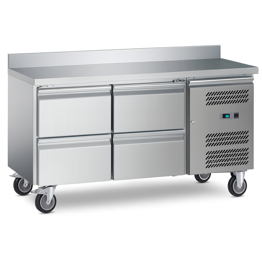 Työtasonsäilytin neljällä GN-laatikolla ja neljällä pyörällä. Tämä ravintolan jääkaappitaso sisältää myös joukon hyödyllisiä ominaisuuksia, jotka tekevät elämästäsi ammattikeittiössä huomattavasti yksinkertaisempaa. Lämpötila-alue +2 – +8 °C CFC-vapaa kylmäaine ja vaahto Täysin ruostumattomasta teräksestä AISI 304 valmistettu rakenne, jossa pyöristetyt sisäreunat helppoa puhdistusta varten Eristys 60 mm paksuudeltaan Tuuletettu jäähdytyslokero parantaa ilmankiertoa Automaattinen sulatus ja kondenssiveden haihdutus Sähköinen termostaatti ja digitaalinen LED-lämpötilanäyttö tarkkaan hallintaan ja helppoon lukemiseen Itse sulkeutuva ovi Magneettitiiviste voidaan vaihtaa ilman työkaluja Lämpöelementti oven kehyksessä tiivistää mahdollisen kondensaation Poistaminen GN1/1 astioille suunniteltu sopivaksi HC kylmäaine Neljä pyörää mukana Virtalähde: 230V / 1N / 50Hz Standardi UK pistoke asennettu Asiakirjat Napsauta tästä ladataksesi CE-vaatimustenmukaisuusvakuutuksen Katso ’Tekniset tiedot’ lisätietoa varten.