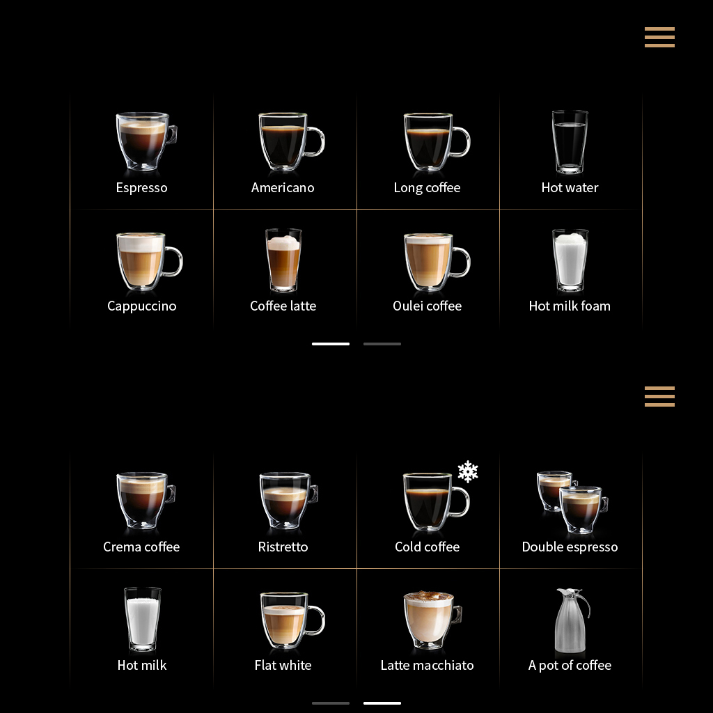 | Toiminnot | Espresso, Tuplaespresso, Americano, Klassinen kahvi, Cappuccino, Caffee Latte, Latte Macchiato, Kuuma maitovaahto, Crema-kahvi, Ristretto, Flat White, Pitkä kahvi, Kuuma maito, Kuuma vesi, Cafe Au Lait, Kahvipannu |