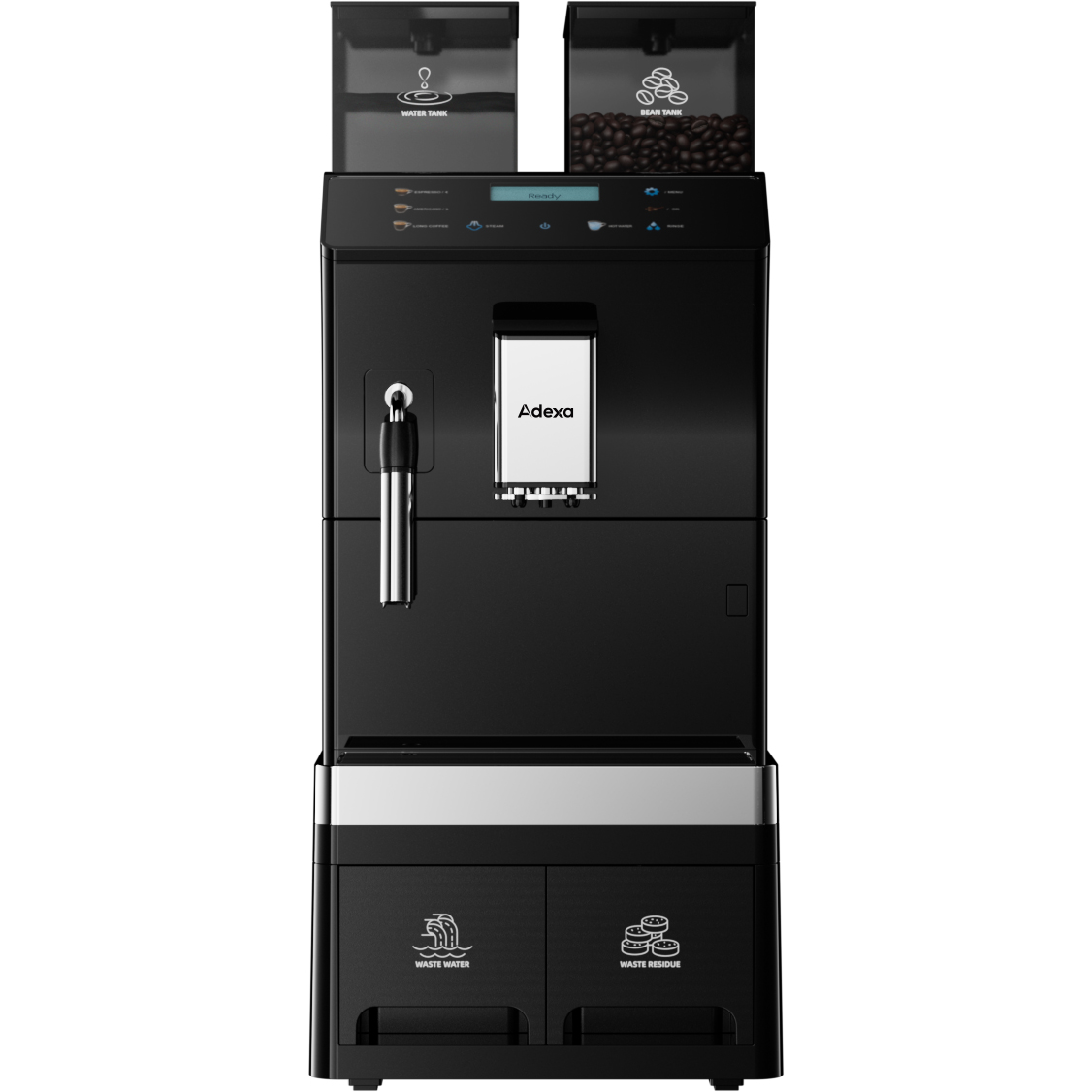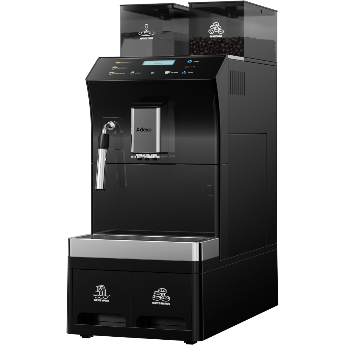 Kaupallinen Kahvikone Täysin Automaattinen Papu-kupillinen 8 juomaa 3 vesiliitäntävaihtoehtoa Höyryputki | Adexa BTB1015