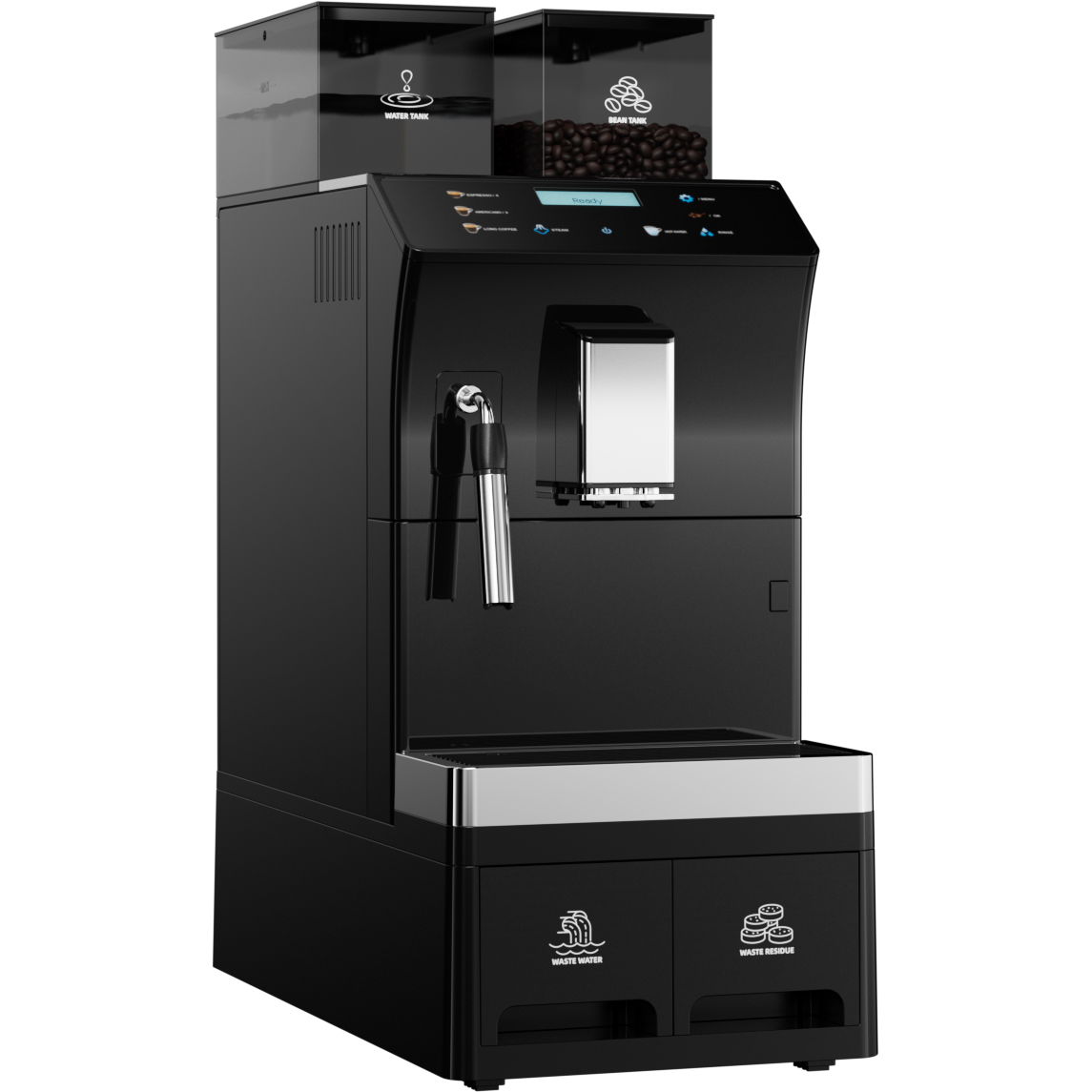 Nosta kahvitarjoilusi tasoa tällä ammattimaisella automaattisella kahvikoneella. Tarjoa barista-laatuista kahvia ennennäkemättömällä nopeudella ja johdonmukaisuudella, kaikki napin painalluksella. Tämä täysin automaattinen kahvikone on täydellinen ratkaisu suurille volyymeille toimistossasi, lounashuoneessasi, kahvilassasi, hotellissasi tai pikapalveluympäristössäsi, poistaen laajan baristakoulutuksen tarpeen ja taaten poikkeuksellisen maun jokaisessa kupissa.
