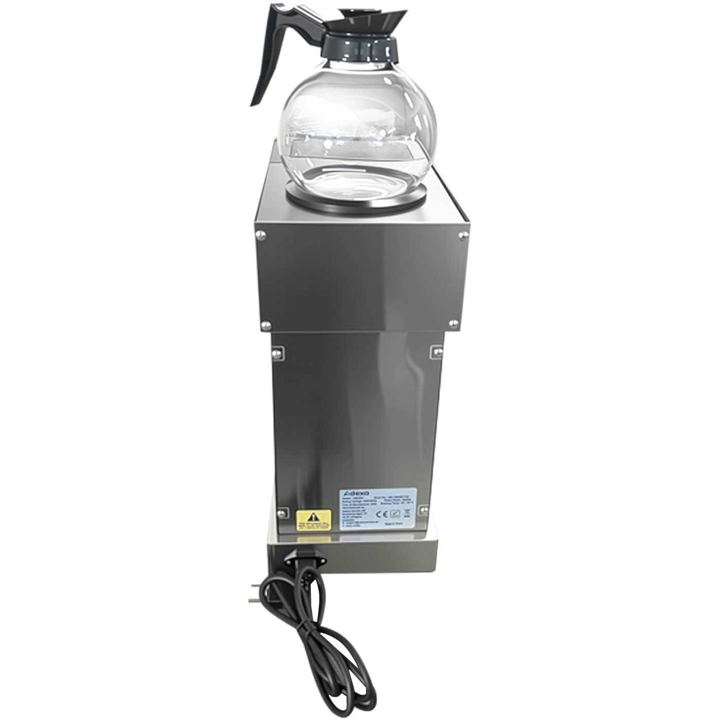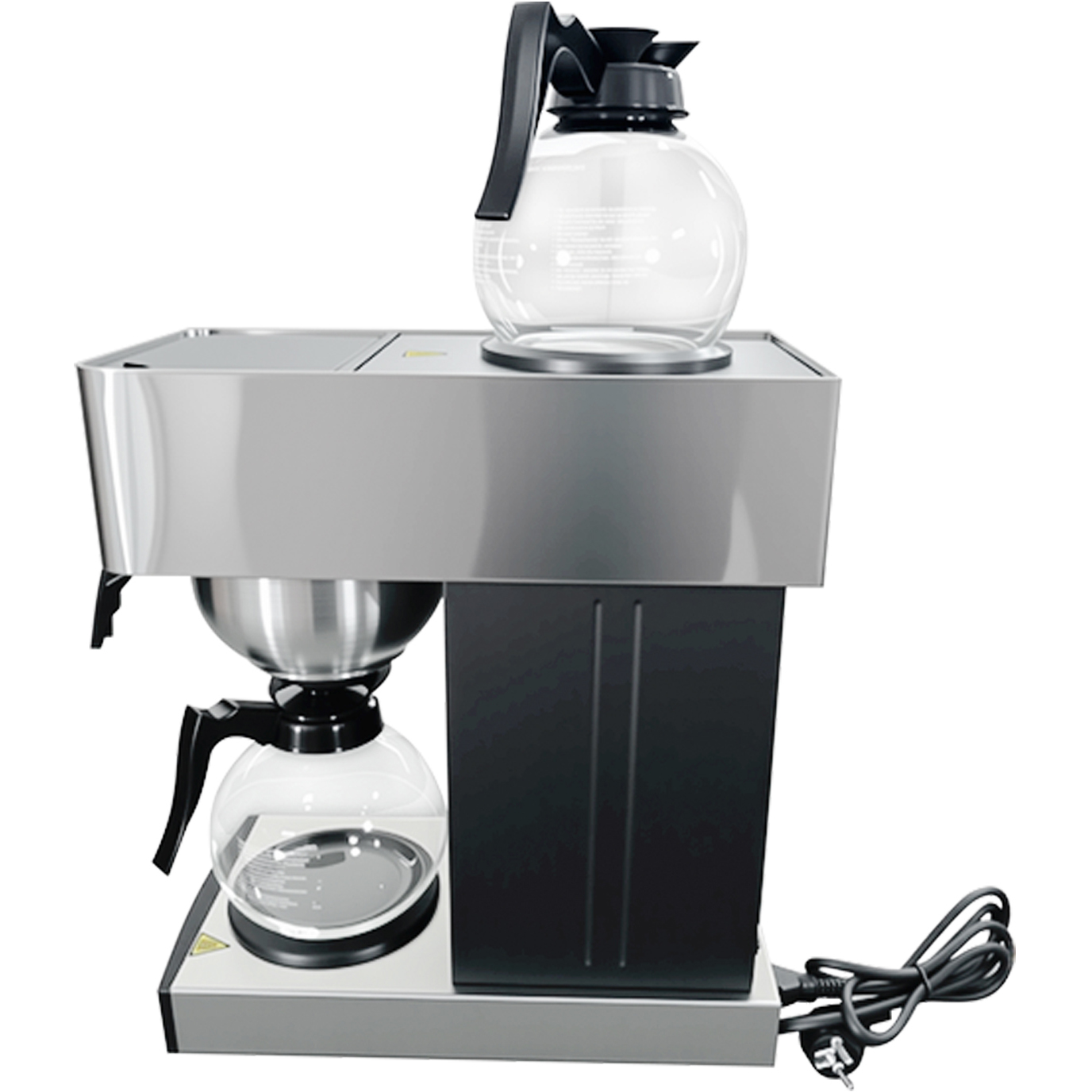 Valmista herkullista kahvia asiakkaillesi tai vieraille ammattimaisella kaksinkertaisella suodatinkahvikoneella. Tämä kahden kannun manuaalinen ja automaattinen täyttökone on suunniteltu julkisiin tiloihin, joissa ihmiset tarvitsevat erinomaista kahvia helposti, kätevästi ja nopeasti, kuten toimistoissa, kokoushuoneissa, klubeissa, baareissa ja ravintoloissa. Modernin virtaviivaisen muotoilun ansiosta se tuo täysin uuden mukavuuden ja ylellisyyden tunteen kaupallisiin kahvinkeittimiin. Katso tarkemmat tiedot kohdasta ’Tekniset tiedot’.