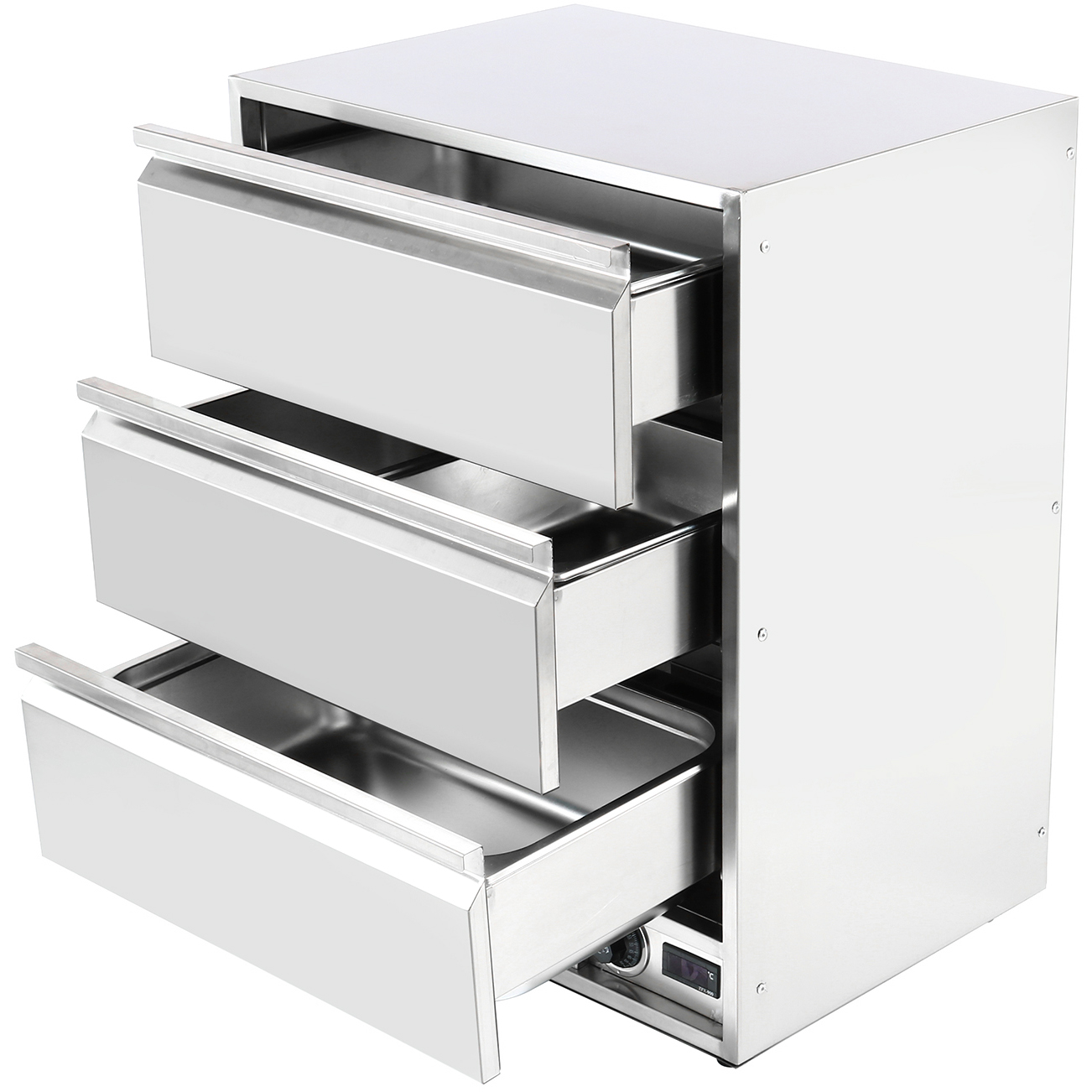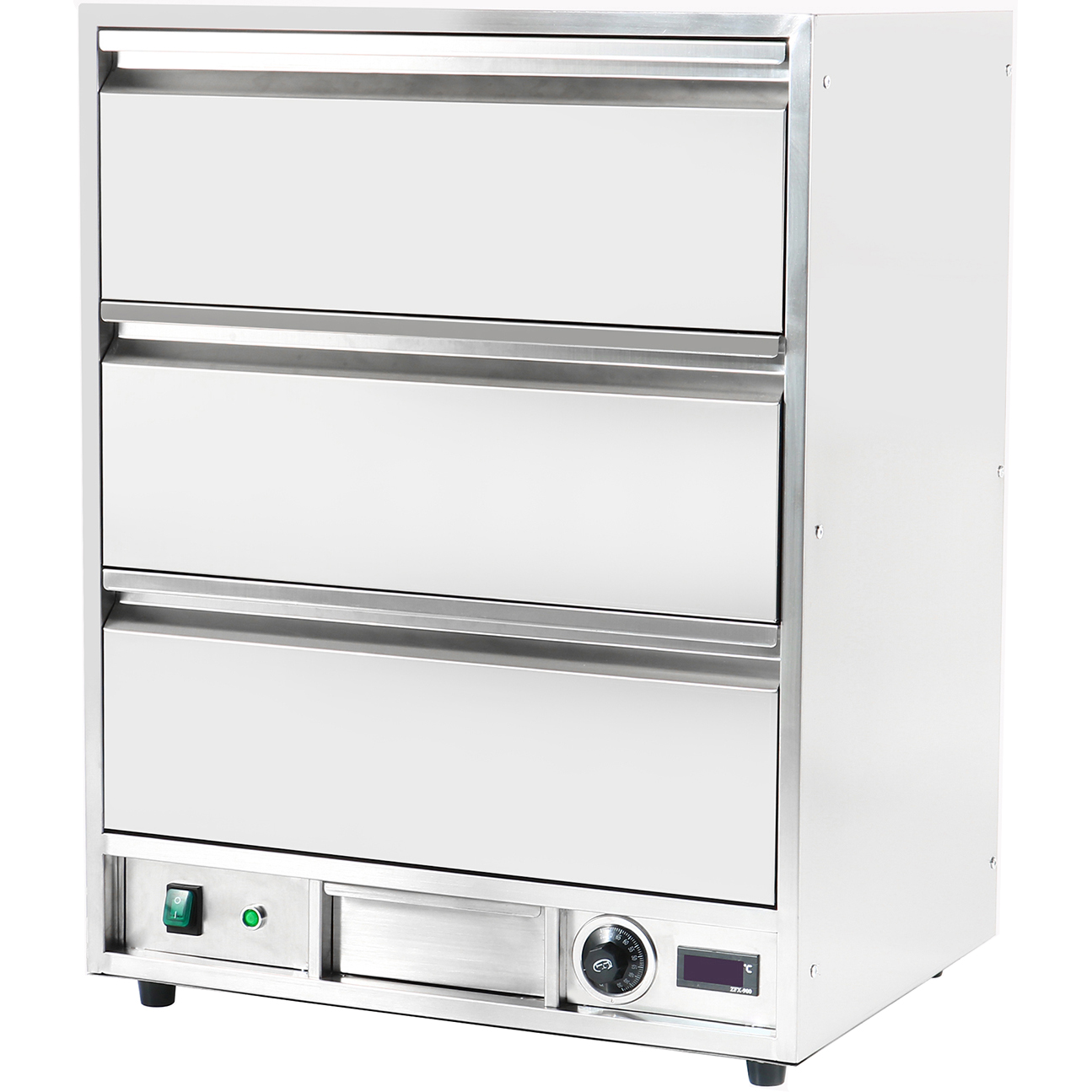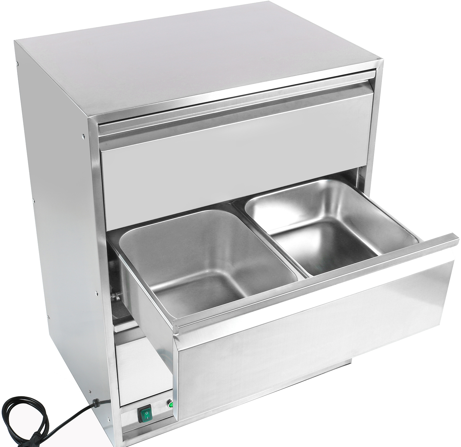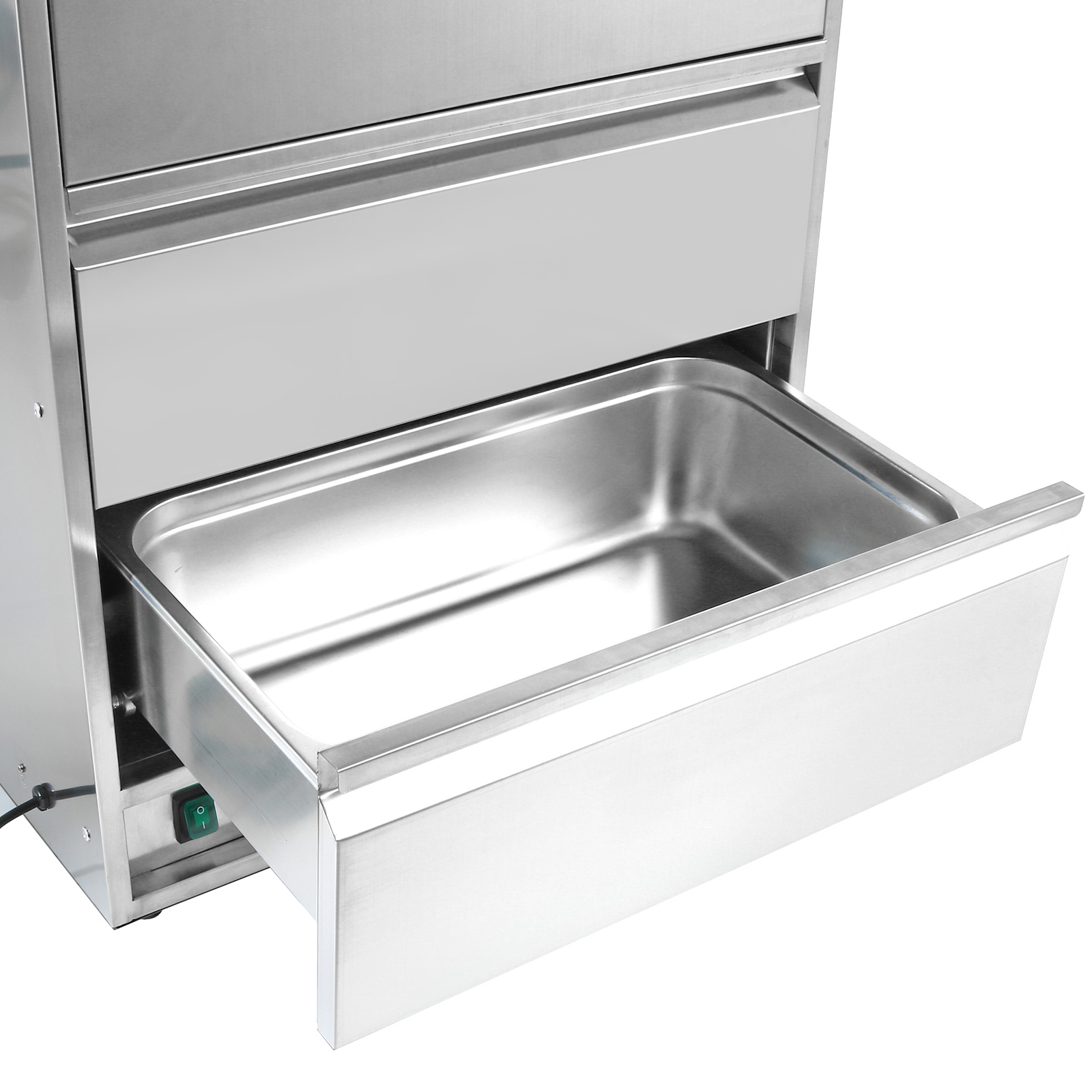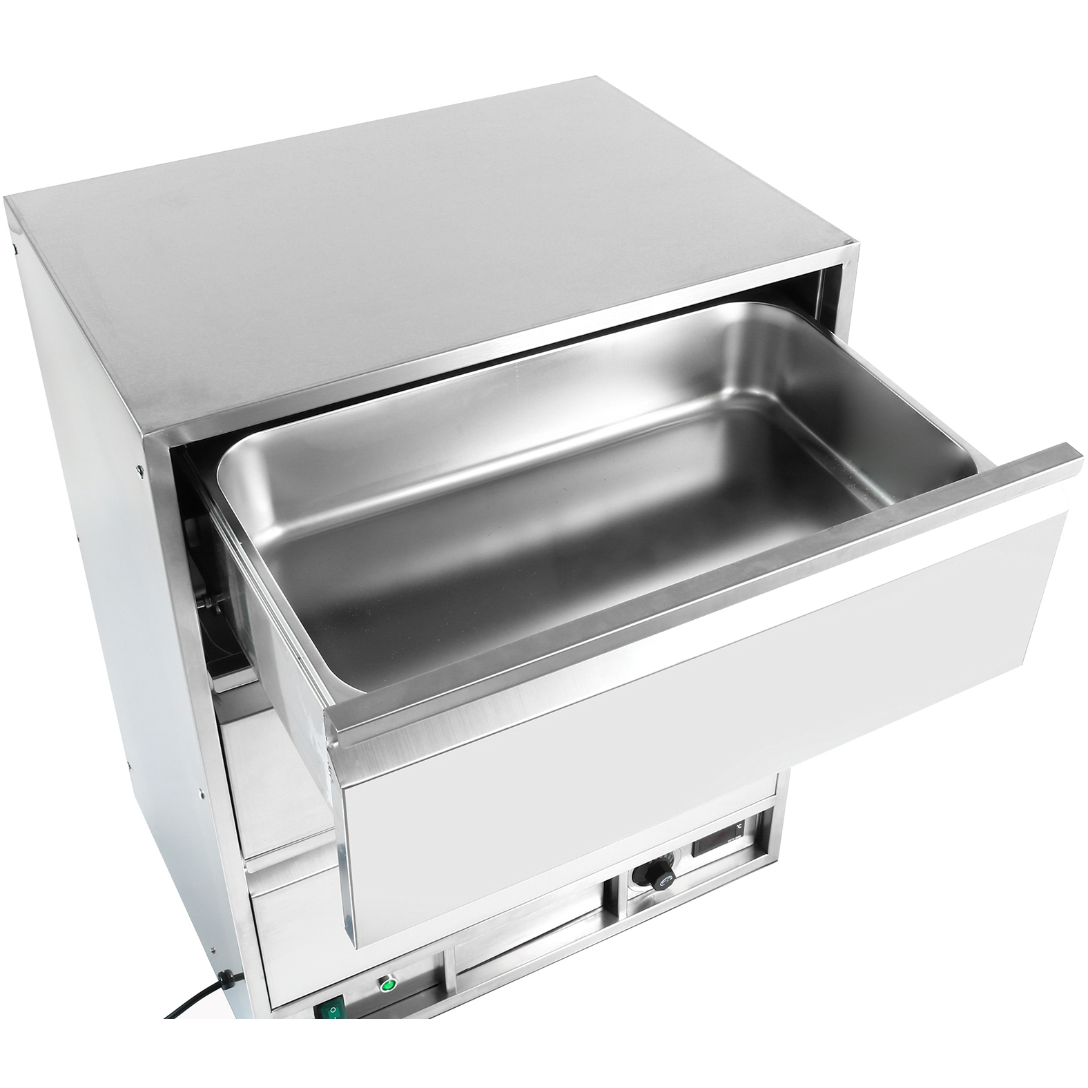 Tämä yksivetoisella lämmittimellä varustettu järjestelmä tarjoaa hellävaraisen, säteilevän lämmönlähteen ruoallesi. Tässä vetolaatikkolämmittimessä säilytetyt tuotteet pysyvät kosteina, maukkaina ja houkuttelevina pidempään! Koko rakenne ruostumatonta terästä, Termostaattiohjattu, kestävä ja vankka päälle/pois virtakytkin valaistuksella Raskasrakenteinen erikoismuotoinen lämmityselementti tasaisen lämmönjakautumisen takaamiseksi.