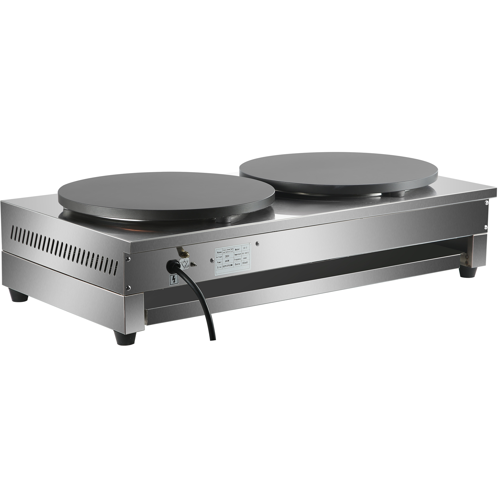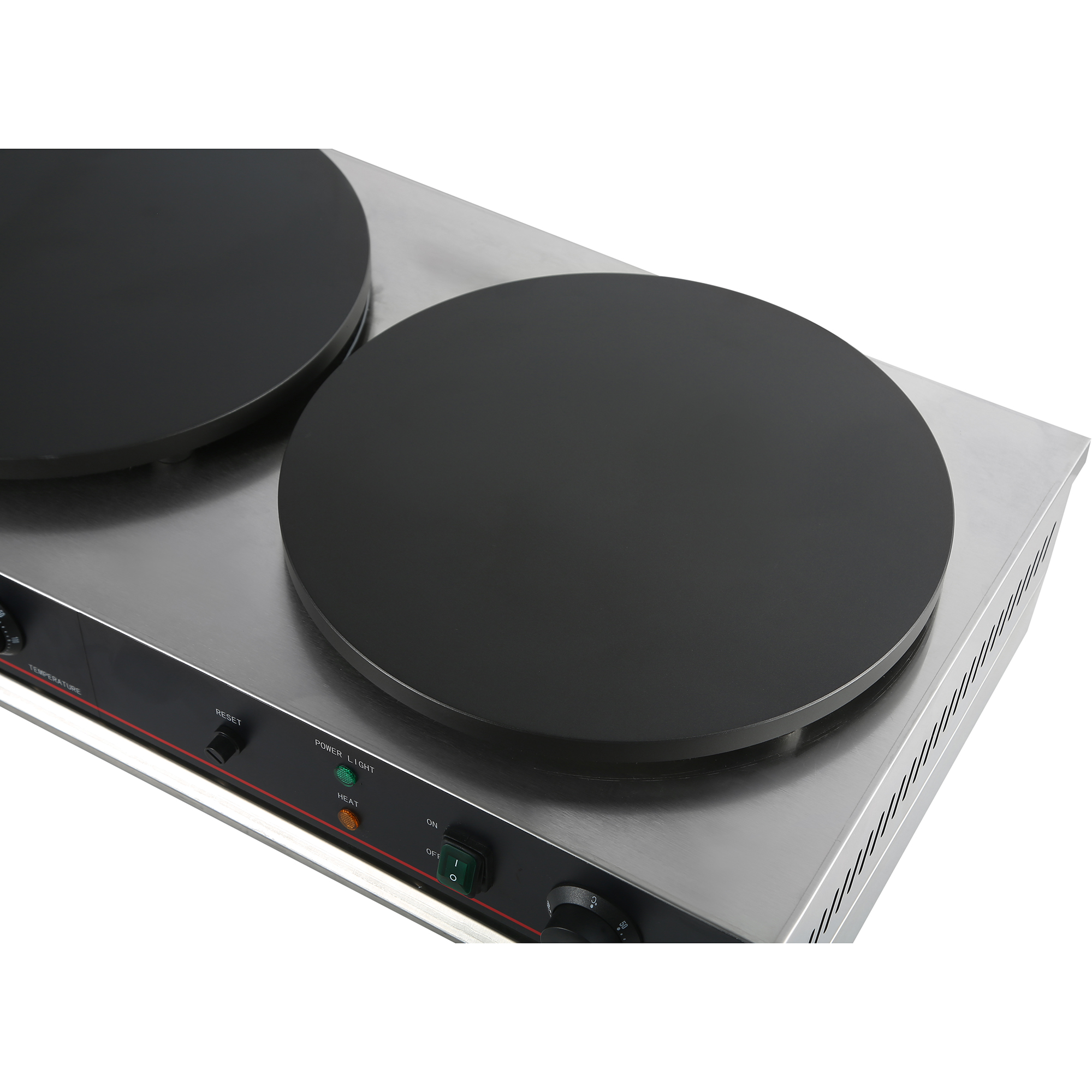 Korkealaatuinen ammattimainen kreppipannu. Valmista herkullisia kreppuja tällä edullisella koneella. Sisältää metallisen T-muotoisen levittimen. Vankka ruostumattomasta teräksestä valmistettu rakenne. Lämpö- ja virtailmaisimet. Tarttumaton valurautalevy. Liukumattomat jalat lisäävät vakautta. Katso tarkat tiedot kohdasta ’Tekniset tiedot’.