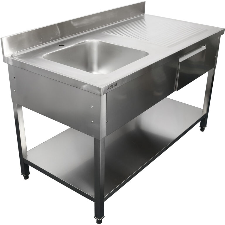 Tämä on erinomainen vastine rahalle ammattimaiselle catering-pesualtaalle. Raskas, korkealaatuinen, täysin ruostumattomasta teräksestä valmistettu ammattimainen pesuallas, joka täyttää elintarvike- ja ravintola-alan korkeat laatuvaatimukset. Ei sinkittyjä osia, kuten halvoissa vaihtoehdoissa markkinoilla! Ruostumaton teräsrakenne 1 esiporattu hanan reikä Säädettävät jalat Vuodonestoreuna Roiskesuoja Toimitetaan litteänä Hana ei sisälly hintaan Katso tarkat tiedot kohdasta ’Tekniset tiedot’.