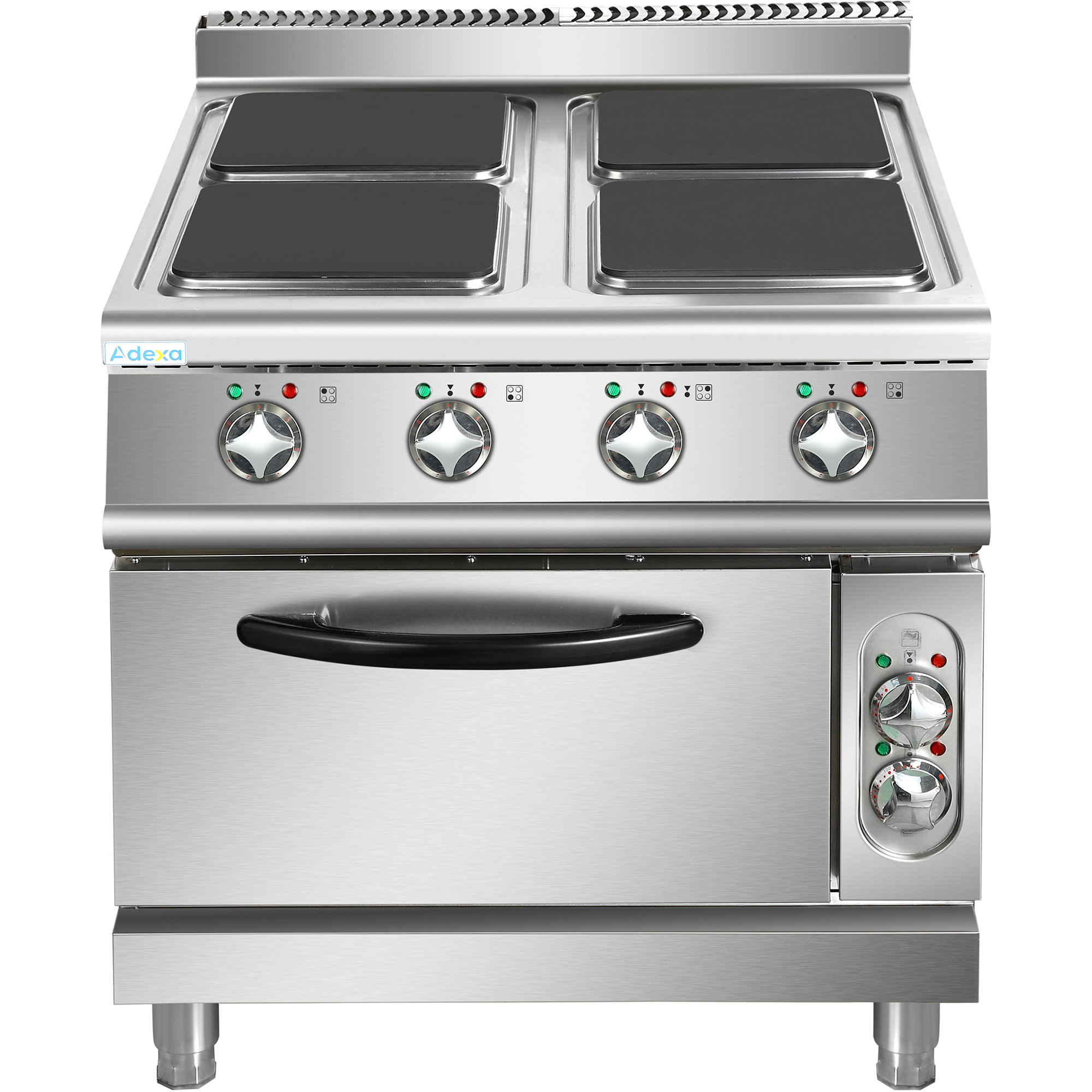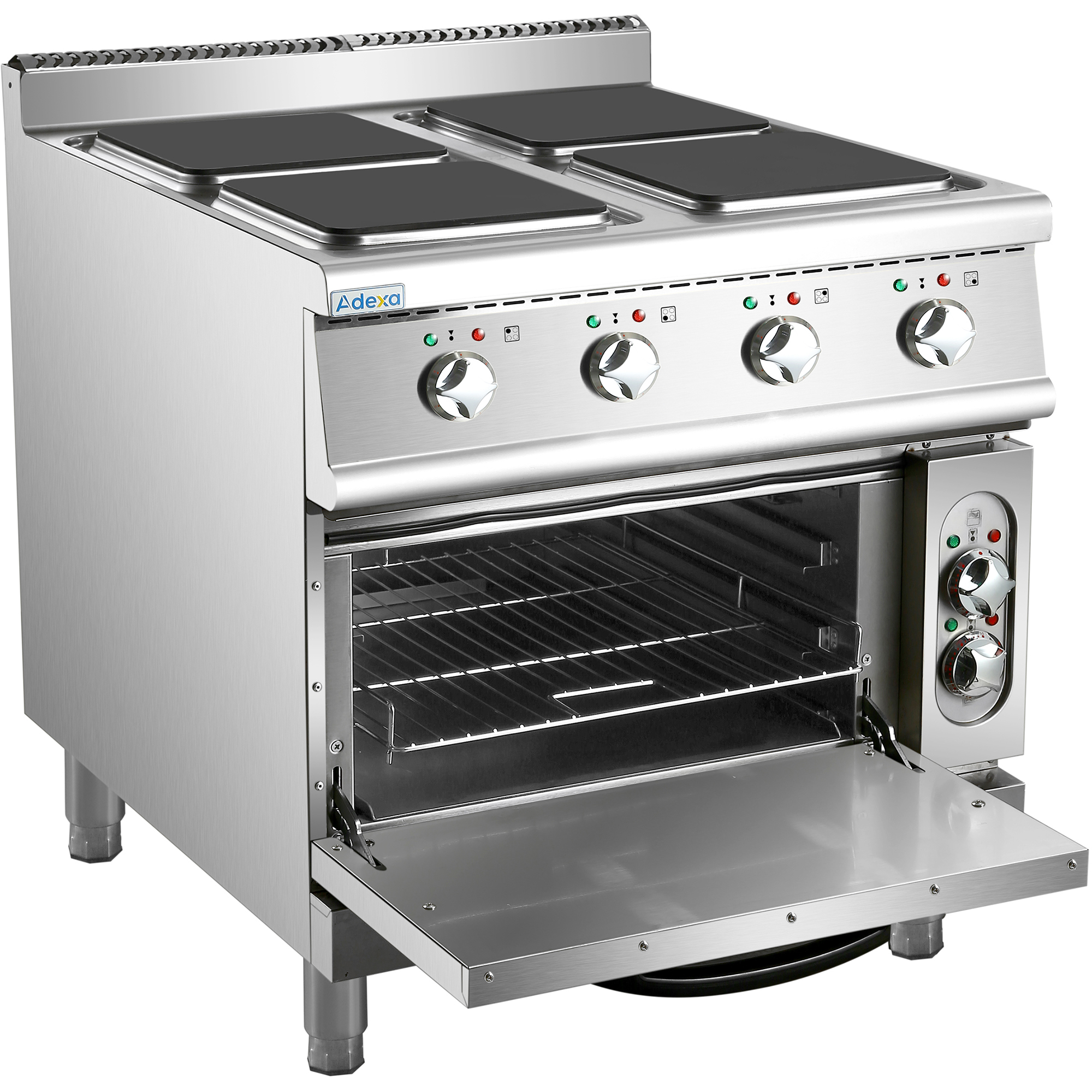 Raskaaseen käyttöön soveltuva, korkealaatuinen 4 polttimen sähköhella sähköuunilla, valmistettu ruostumattomasta teräksestä. Tällä sähköuunilla on 900 mm syvyys, joka soveltuu täydellisesti yhteen modulaarisen keittovalikoimamme kanssa. Mitat: 800x900x920mm Uuni: 550x680x270mm Uunin teho: 4800W Yläosan teho: 4 x 4000W Virtalähde: 380V/50HZ Ruostumatonta terästä 900mm syvyys Asiakirjat Klikkaa tästä ladataksesi käyttöohje Tarkat tiedot löytyvät kohdasta ’Tiedot’.