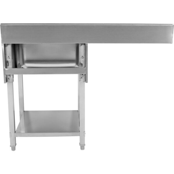 Alkuperäinen hinta oli: 226,16 €.137,96 €Nykyinen hinta on: 137,96 €. (sis. ALV)Purkupöytä Oikea puoli 600x650x850mm Alaosahyllyllä Roiskelevyllä Ruostumaton teräs | Adexa SWB6065R