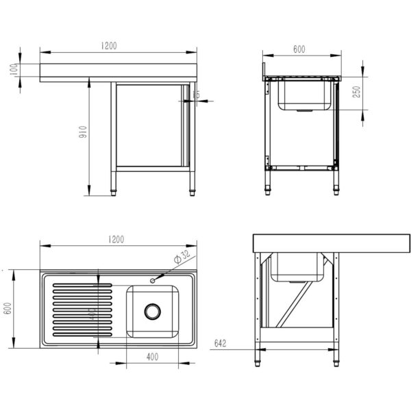 Alkuperäinen hinta oli: 97,06 €.68,91 €Nykyinen hinta on: 68,91 €. (sis. ALV)Kaupallinen pesuallas tyhjennyslevyllä ja kaapin ovella 1200x600x910 mm Yksi allas oikea 400x400x250 mm | Adexa DSB12602DR