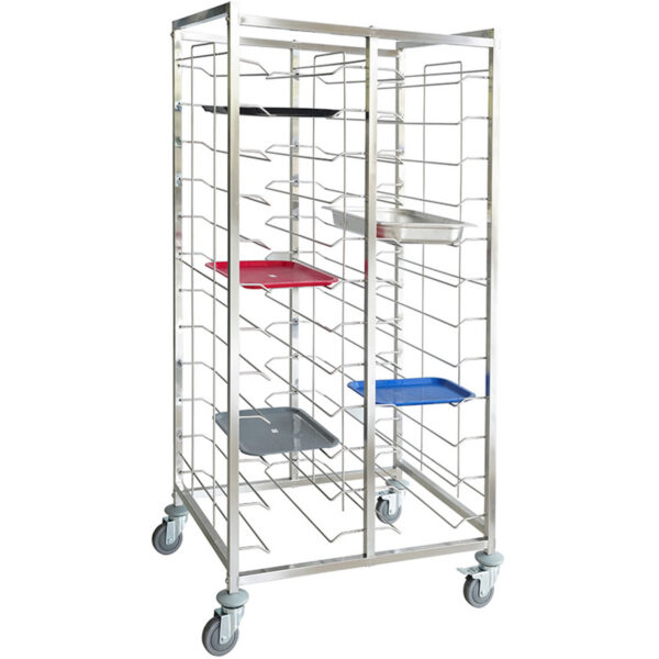 Alkuperäinen hinta oli: 277,61 €.180,44 €Nykyinen hinta on: 180,44 €. (sis. ALV)Pannuhyllyvaunu 30xGN1/1 tarjotinta Ruostumaton teräs 550x740x1705mm Kerrosväli 80mm | Adexa RTD1115