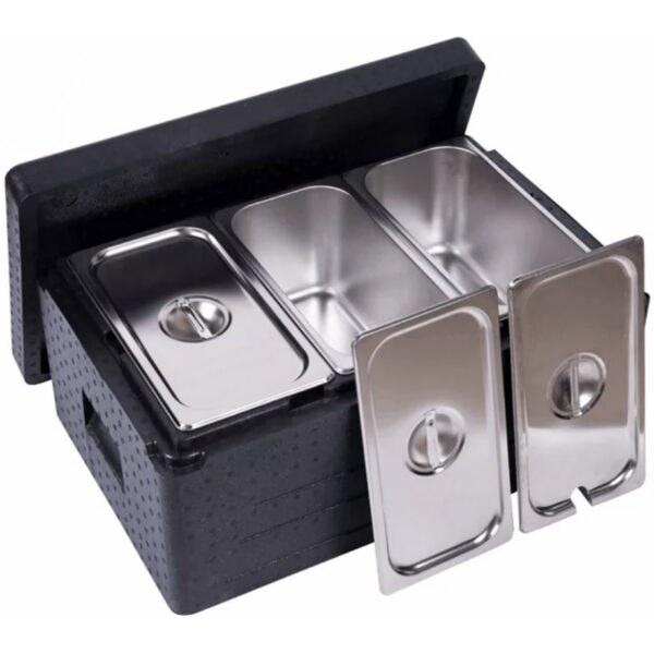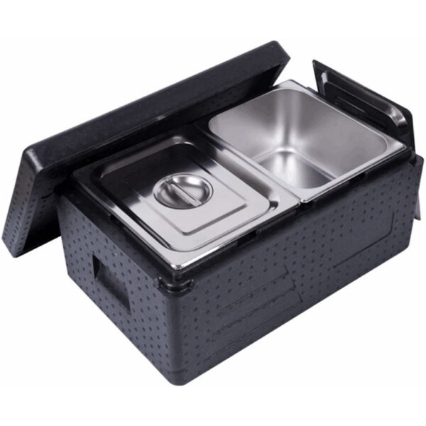Alkuperäinen hinta oli: 147,91 €.63,60 €Nykyinen hinta on: 63,60 €. (sis. ALV)Ylhäältä ladattava EPP-eristetty ruokakuljetuslaatikko / Termoboksi 32 litraa ilman GN1/1-astioita | Adexa WHEPP