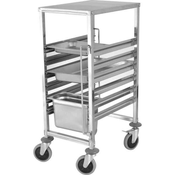 Alkuperäinen hinta oli: 244,80 €.95,47 €Nykyinen hinta on: 95,47 €. (sis. ALV)Pan-teline, jossa ylähylly 6x600x400mm tarjottimia, Ruostumatonta terästä, 470x620x970mm, Kerrosväli 80mm | Adexa RT6406T