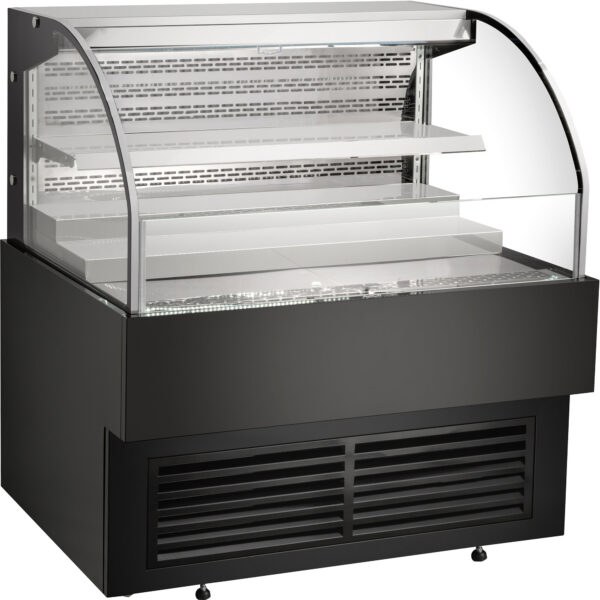 Alkuperäinen hinta oli: 876,03 €.350,41 €Nykyinen hinta on: 350,41 €. (sis. ALV)Kaupallinen kakkutiski Pyöreä etuosa 2 hyllyä 1000x700x1200 mm Musta | Adexa HL1000EM2B