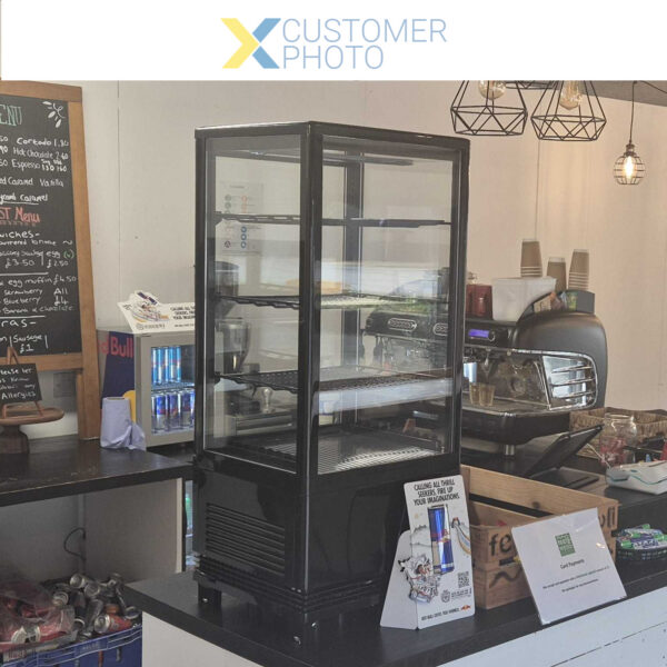 Työtasolle asetettava näyttöjääkaappi 78 litraa 3 hyllyä Musta 1 tasainen ovi | Adexa CL78B
