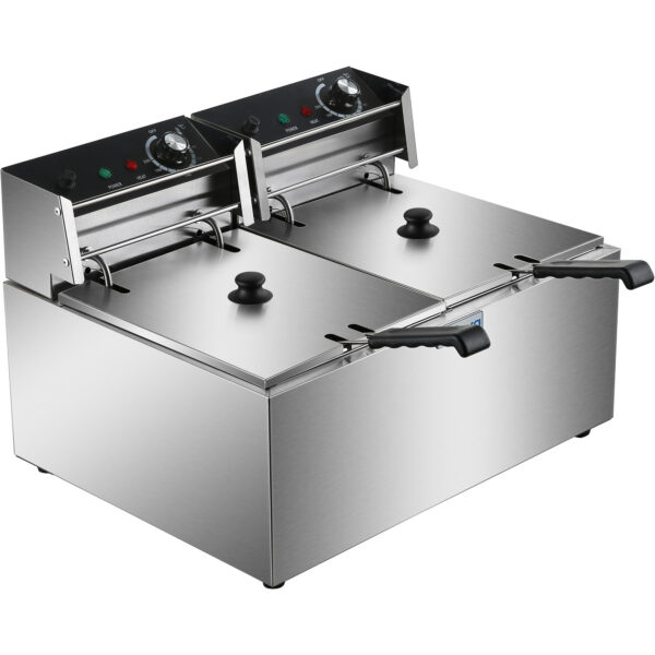 Alkuperäinen hinta oli: 102,58 €.63,60 €Nykyinen hinta on: 63,60 €. (sis. ALV)Kaupallinen kaksinkertainen sähköinen paistokone 2×10 litraa 6kW pöytämalli tyhjennyshanalla | Adexa HEF102V