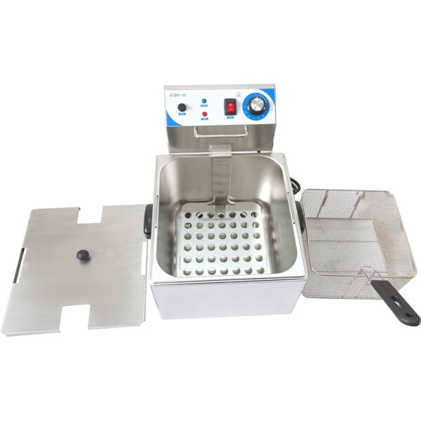 Alkuperäinen hinta oli: 541,70 €.265,43 €Nykyinen hinta on: 265,43 €. (sis. ALV)Kaupallinen Paistinkeitin Yksisäiliöinen Sähköinen 10 litraa 2.8kW Pöytämalli | Adexa HEF88