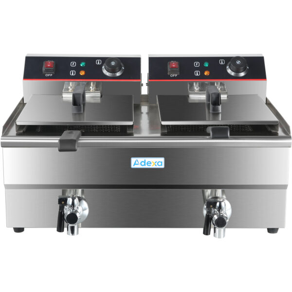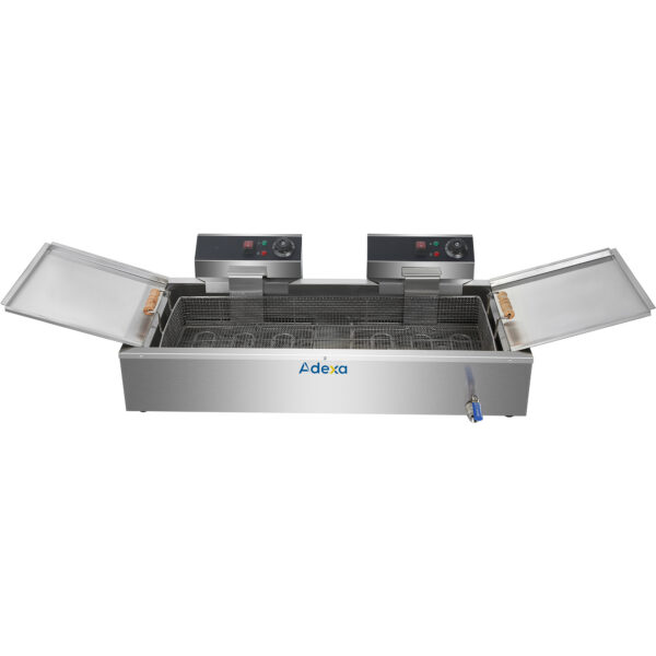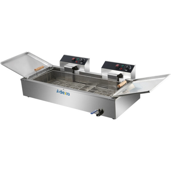 Alkuperäinen hinta oli: 663,72 €.477,88 €Nykyinen hinta on: 477,88 €. (sis. ALV)Kaupallinen Sähköinen Kaksinkertainen Rasvakeitin 2×16 litraa 10kW Työtasolle Viemärihana | Adexa HEF162V