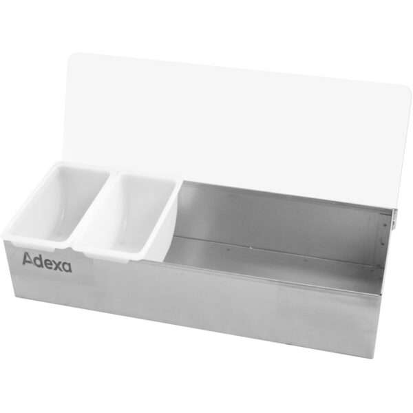Kaupallinen mausteteline kannella, mukanaan 3xGN1/4-150mm säiliöt, ruostumatonta terästä | Adexa CHE03ADFL