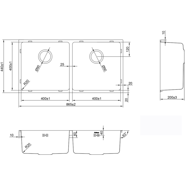 Alkuperäinen hinta oli: 109,66 €.63,60 €Nykyinen hinta on: 63,60 €. (sis. ALV)Käsintehty Kaksiosainen Pesuallas 865x430x200mm Ruostumaton Teräs R20 Päältäkiinnitettävä / Alakiinnitettävä | Adexa 204040D