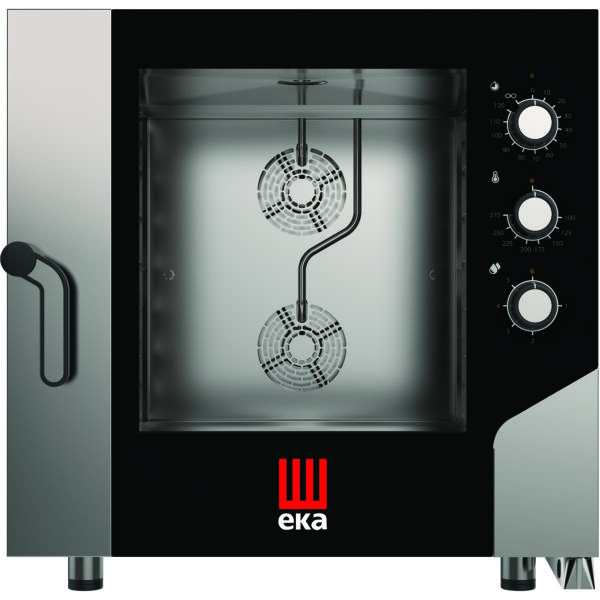Ammattilaiskäyttöön tarkoitettu yhdistelmäuuni, sähköinen, 6 tasoa GN1/1 ja 600x400mm, sähkömekaaniset ohjaimet, suora höyry | Tecnoeka MKF616S